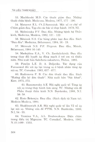 trong điều trị Migraine. TC. Corsakof,. Moskva, 1983.