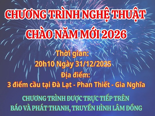 Xem thêmNội dung chính trong Thông tin tuyên truyền: THÔNG TIN, TUYÊN TRUYỀN CHƯƠNG TRÌNH NGHỆ THUẬT CHÀO NĂM MỚI 2026