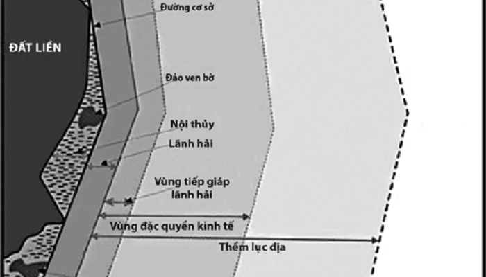 Căn cứ quy định của UNCLOS 1982, tại Điều 3, Luật Biển năm 2013 xác định “Vùng biển Việt Nam bao gồm nội thủy, lãnh hải, vùng tiếp giáp lãnh hải, vùng đặc quyền kinh tế và thềm lục địa thuộc chủ quyền, quyền chủ quyền và quyền tài phán quốc gia của Việt Nam, được xác định theo pháp luật Việt Nam, điều ước quốc tế về biên giới lãnh thổ mà nước Cộng hòa xã hội chủ nghĩa Việt Nam là thành viên và phù hợp với Công ước của LHQ về Luật Biển năm 1982”.