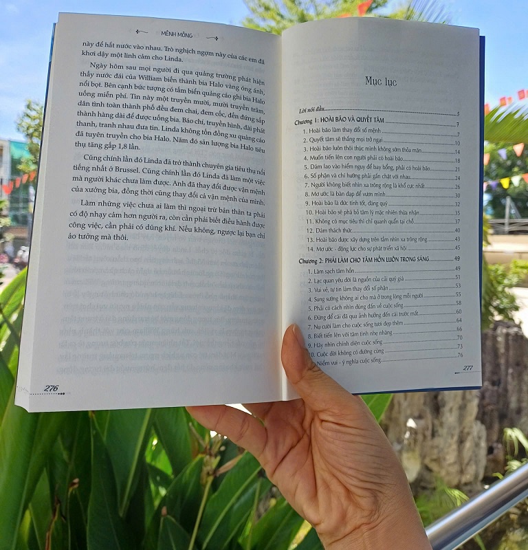 : Gồm 8 chương: Hoài bão và quyết tâm; Phải làm cho tâm hồn luôn trong sáng; Cuộc đời chìm nổi tôi luyện con người trưởng thành; Lòng tin sẽ làm tan chảy tảng băng cuộc sống; Sống say sưa với ngọc lửa nhiệt tình; Thành công và thất bại đôi khi chỉ là một bước; Nắm chắc hiện tại để có ngày mai; Có chí làm nên, có gan làm giàu