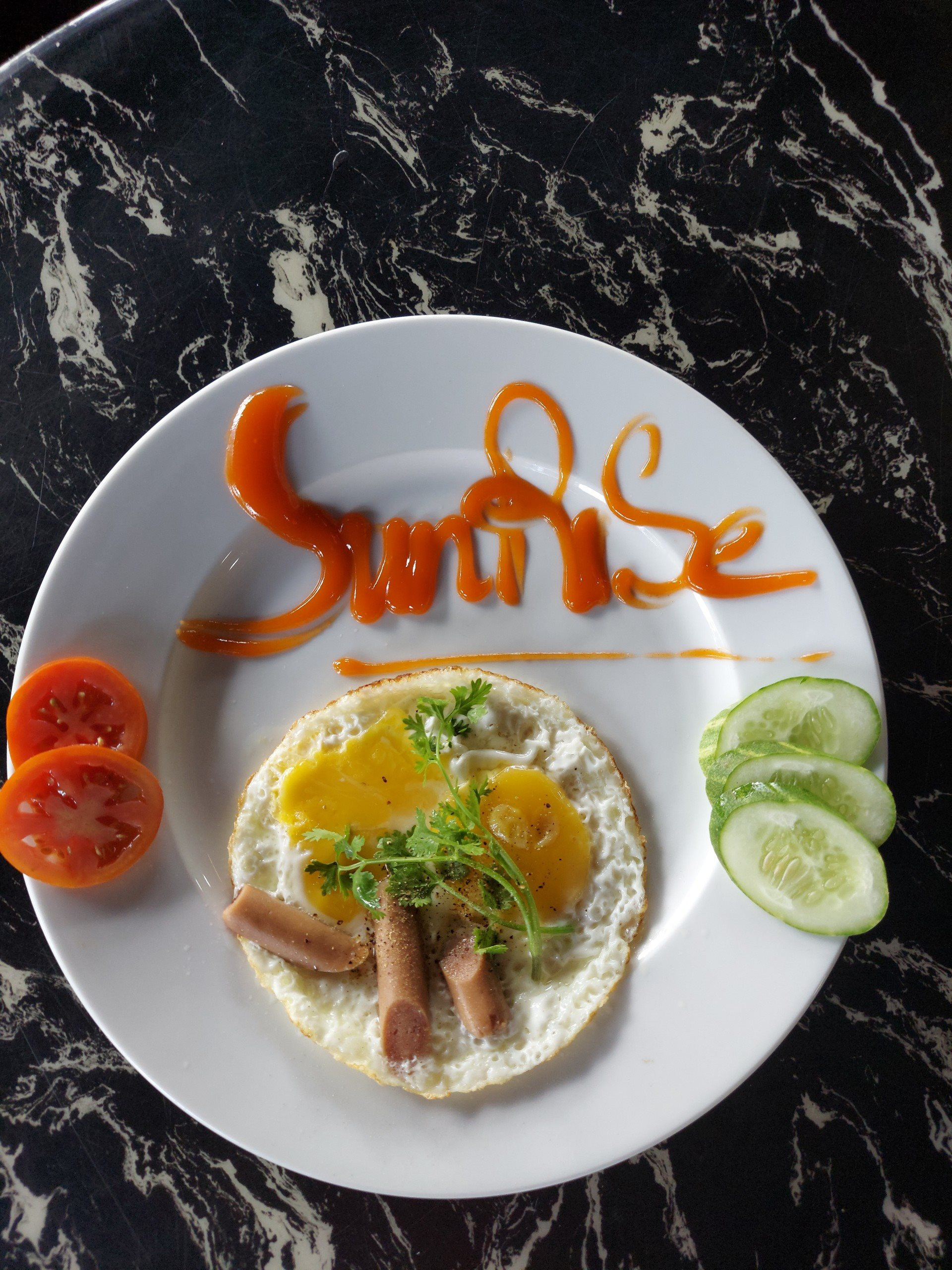 Cách trang trí trên phần ăn sáng khá bắt mắt; một góc quán Sunrise