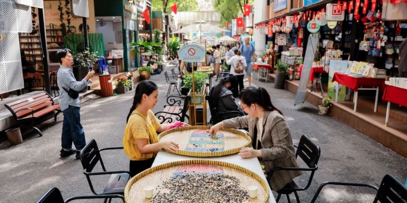 Không chỉ là nơi mua sách, Đường sách Nguyễn Văn Bình đang trở thành điểm đến trải nghiệm văn hóa cho du khách quốc tế. “Tôi thích thú với những chơi trò chơi dân gian Việt Nam ở đây. Cảm giác như được chạm vào một phần văn hóa Việt Nam. Nhiều nhà sách cũng được trang trí rất đẹp và có bán đồ lưu niệm xinh xắn”, Annhen, du khách từ Nga, chia sẻ.