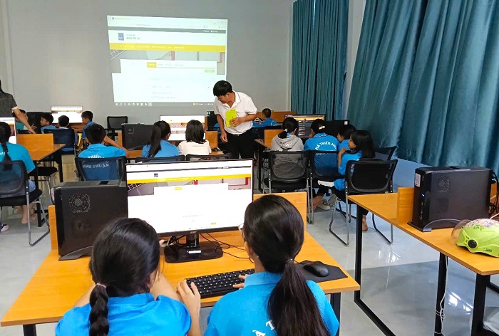 Hoạt động được tổ chức nhằm giúp các em làm quen với phương thức tra cứu tài liệu hiện đại, nâng cao kỹ năng tìm kiếm thông tin, từng bước hình thành thói quen tự học, chủ động tiếp cận tri thức trong môi trường số.