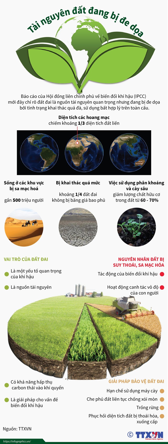 Báo cáo của Hội đồng liên chính phủ về biến đổi khí hậu (IPCC) mới đây chỉ rõ đất đai – nguồn tài nguyên quan trọng – đang bị đe dọa bởi tình trạng khai thác quá đà, sử dụng bất hợp lý trên toàn cầu.
