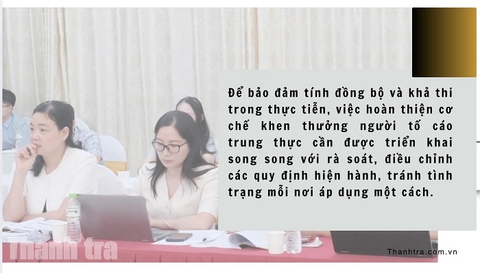 Do đó, để bảo đảm tính đồng bộ và khả thi trong thực tiễn, việc hoàn thiện cơ chế khen thưởng người tố cáo trung thực cần được triển khai song song với rà soát, điều chỉnh các quy định hiện hành, tránh tình trạng mỗi nơi áp dụng một cách.