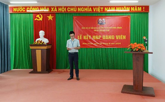 Tại buổi lễ, thay mặt Chi bộ đồng chí Nguyễn Xuân Bình – Bí thư Chi bộ đã đọc và trao quyết định kết nạp đảng cho đảng viên mới Đào Đức Thuận.