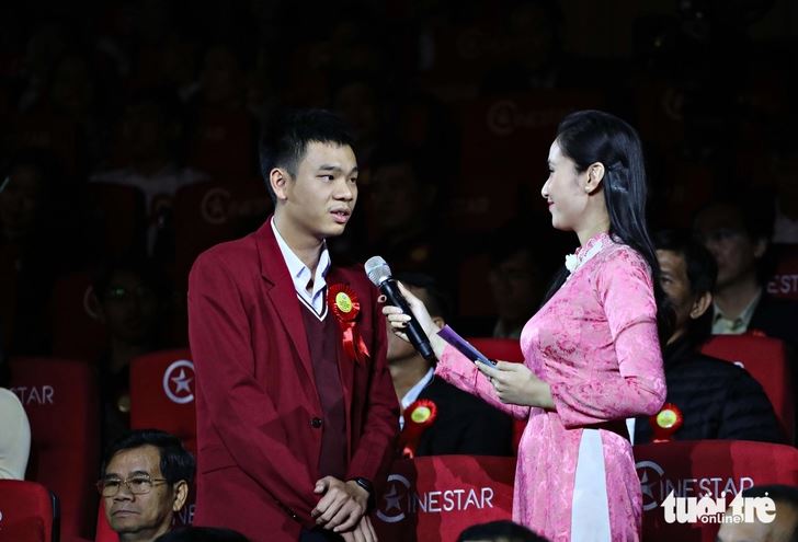 Nam sinh Đặng Huy Hậu (lớp 11 chuyên tin, Trường THPT chuyên Thăng Long – Đà Lạt, tỉnh Lâm Đồng) giao lưu tại đại hội – Ảnh: L.A.