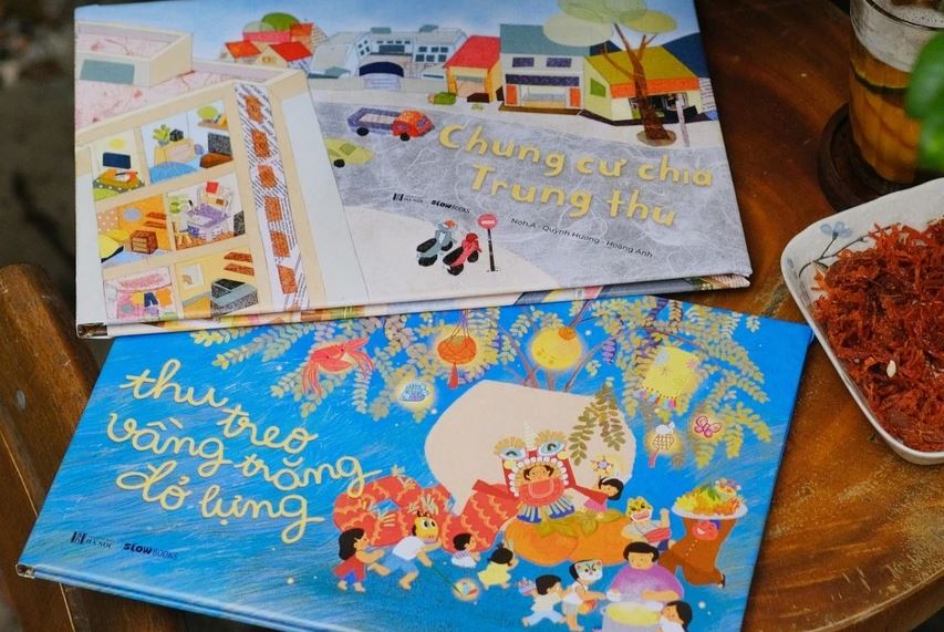 Hai cuốn sách tranh Thu treo vầng trăng đỏ lựng (Quỳnh Hương – Hương Anh, dành cho độ tuổi 3+) và Chung cư chia Trung thu (Quỳnh Hương – Hoàng Anh – Noh.A, dành cho độ tuổi 4+) khắc họa trải nghiệm gắn bó cùng thiên nhiên ở làng quê lẫn sự ấm áp trong cộng đồng thành thị, tạo nên chân dung một mùa Tết cổ truyền chan hòa và ý nghĩa.
