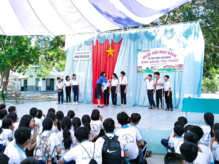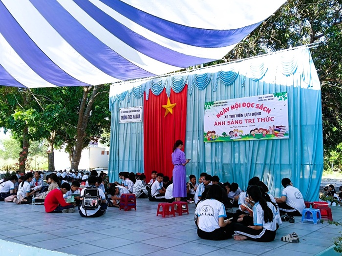 XE THƯ VIỆN LƯU ĐỘNG ĐẾN VỚI HỌC SINH TRƯỜNG THCS MA LÂM