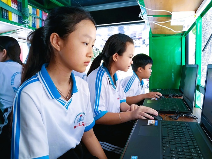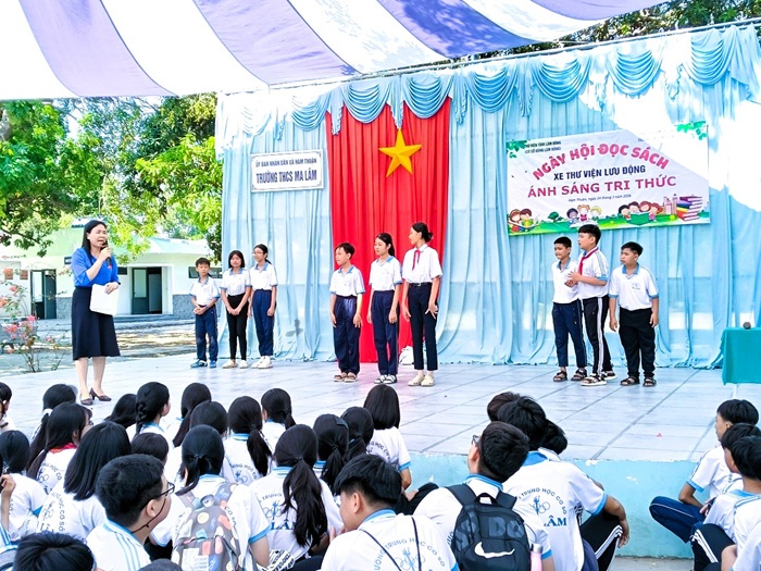 Xe Thư viện lưu động đến với học sinh Trường THCS Ma Lâm