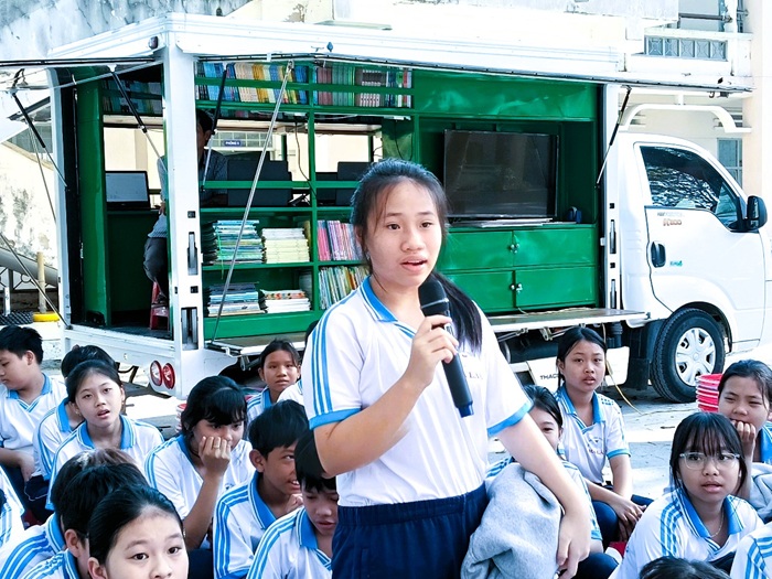 Hoạt động xe Thư viện Lưu động không chỉ mang nguồn sách đến gần hơn với học sinh mà còn góp phần xây dựng môi trường học tập thân thiện, khuyến khích các em hình thành thói quen đọc sách và lan tỏa văn hóa đọc trong nhà trường.