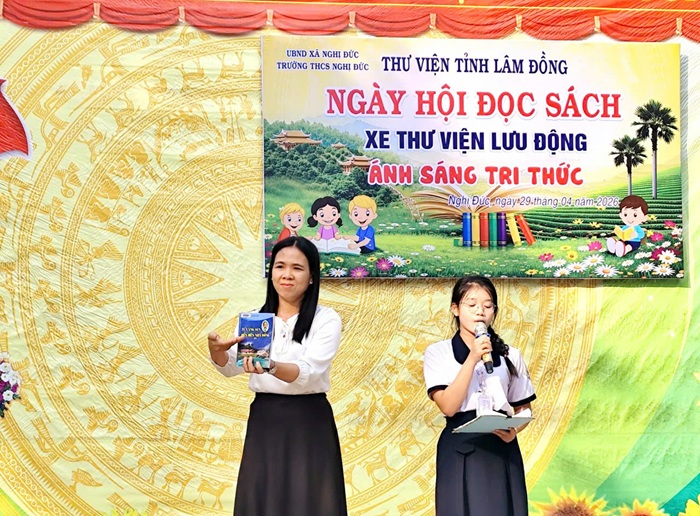 Sáng ngày 29/04/2026, xe Thư viện Lưu động tỉnh Lâm Đồng – Cơ sở Đông Lâm Đồng đã đến phục vụ tại Trường THCS Nghị Đức (xã Nghị Đức), mang theo 2.000 bản sách với nhiều thể loại phong phú, phù hợp với lứa tuổi học sinh.