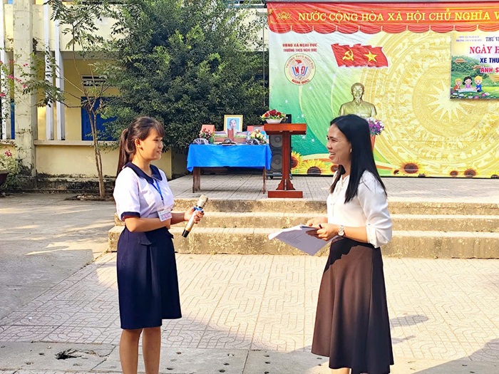Xe Thư viện lưu động đến với học sinh Trường THCS Nghị Đức
