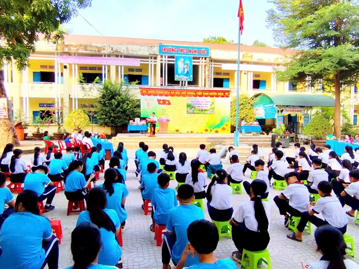 XE THƯ VIỆN LƯU ĐỘNG ĐẾN VỚI HỌC SINH TRƯỜNG THCS NGHỊ ĐỨC