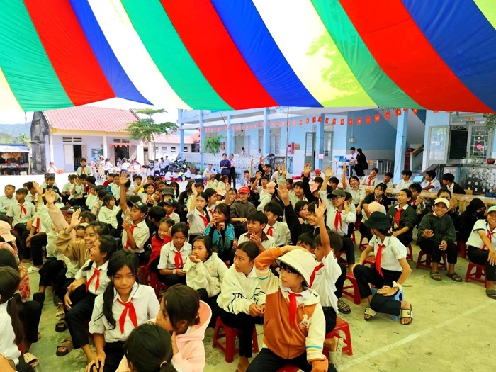 Công ty CNHH Kim Hoàng Phú TPHCM tặng 10balo cho học sinh trường TH&THCS Đông Giang