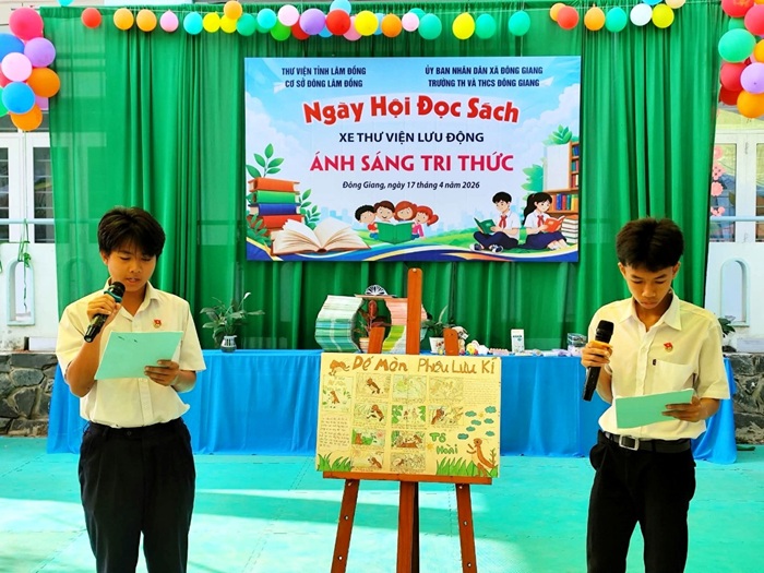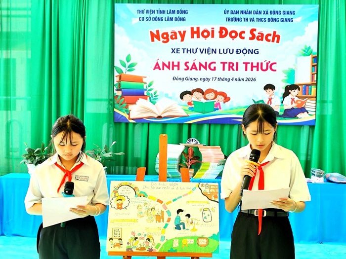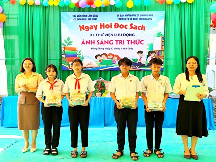 Sáng ngày 17/04/2026, xe Thư viện Lưu động tỉnh Lâm Đồng – Cơ sở Đông Lâm Đồng đã đến phục vụ tại Trường TH&THCS Đông Giang (xã Đông Giang), mang theo 2.000 bản sách với nhiều thể loại phong phú, phù hợp với lứa tuổi học sinh.