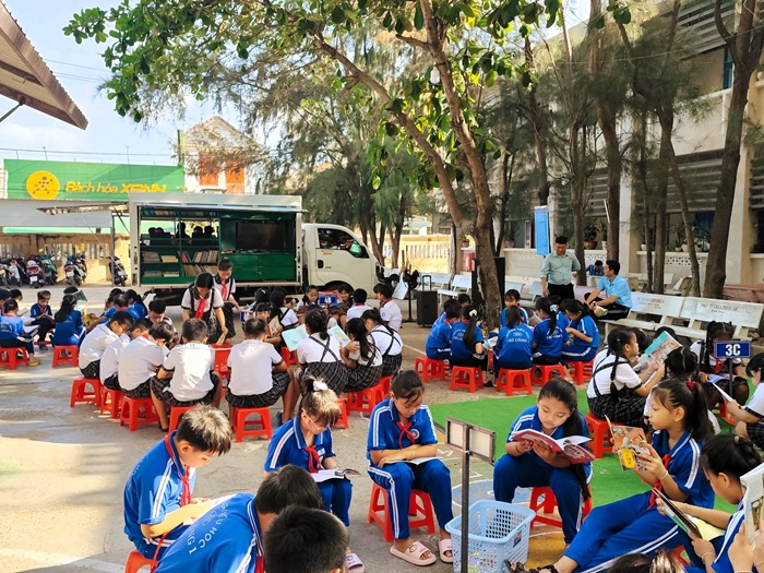 Xe thư viện lưu động đến với học sinh Trường Tiểu học Chí Công 1