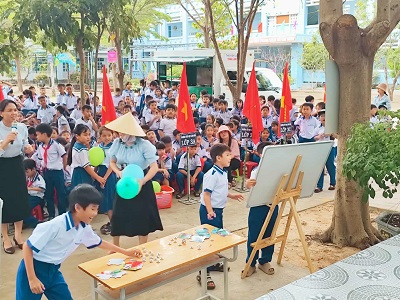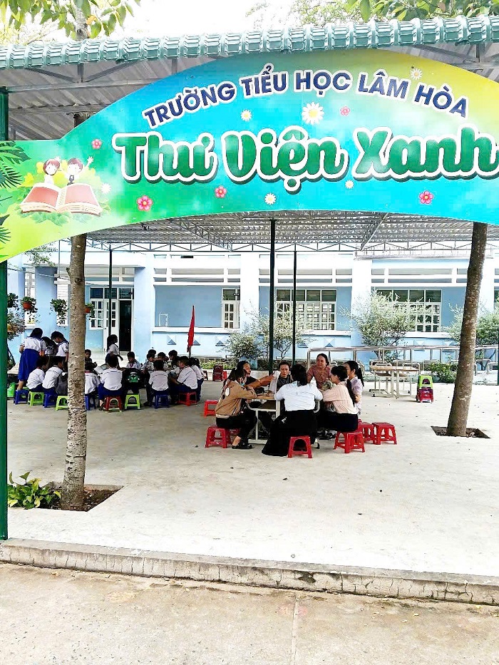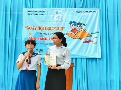 XE THƯ VIỆN LƯU ĐỘNG ĐẾN VỚI HỌC SINH TRƯỜNG TIỂU HỌC LÂM HÒA
