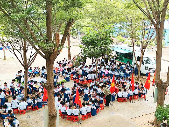 Chiều 10/10/2025, xe thư viện lưu động tỉnh Lâm Đồng – Cơ sở Bình Thuận đã về phục vụ tại Trường TH Lâm Hòa (Xã Hàm Thuận).