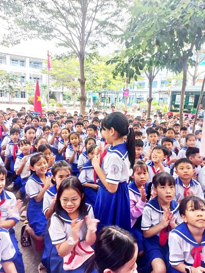 Cùng với hoạt động đọc sách, các em còn được xem văn nghệ, giới thiệu sách, đố vui có thưởng, nhìn tranh đoán sách, câu đố thành ngữ, robot…với 1.810 bản sách, chương trình đã thu hút 1023 em học sinh cùng các thầy cô, nhân viên nhà trường tham gia.