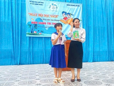 Xe thư viện lưu động đến với học sinh Trường Tiểu học Lâm Hòa