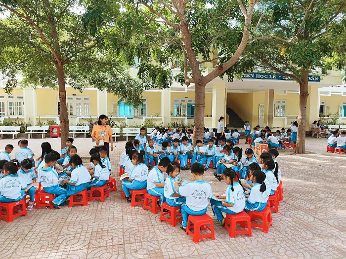 XE THƯ VIỆN LƯU ĐỘNG ĐẾN VỚI HỌC SINH TRƯỜNG TIỂU HỌC PHAN RÍ CỬA 1