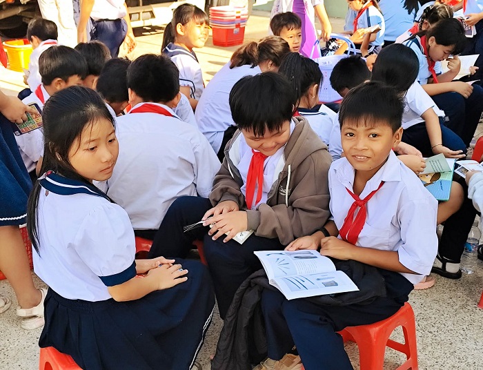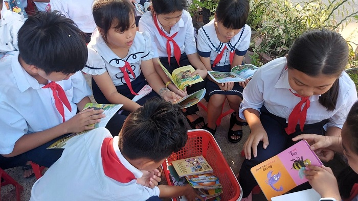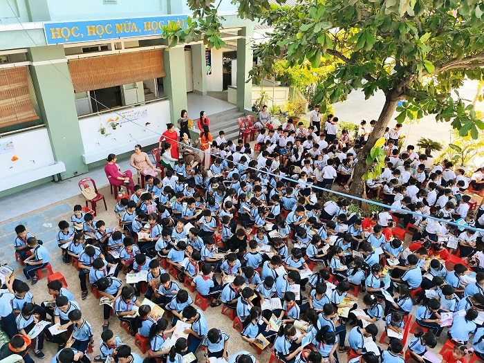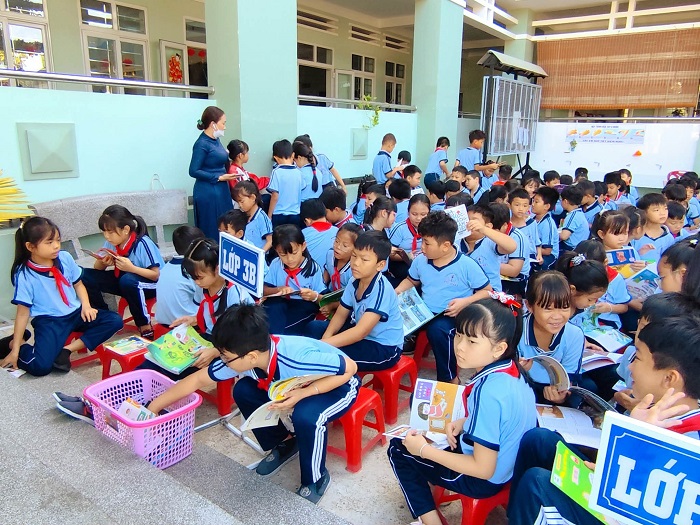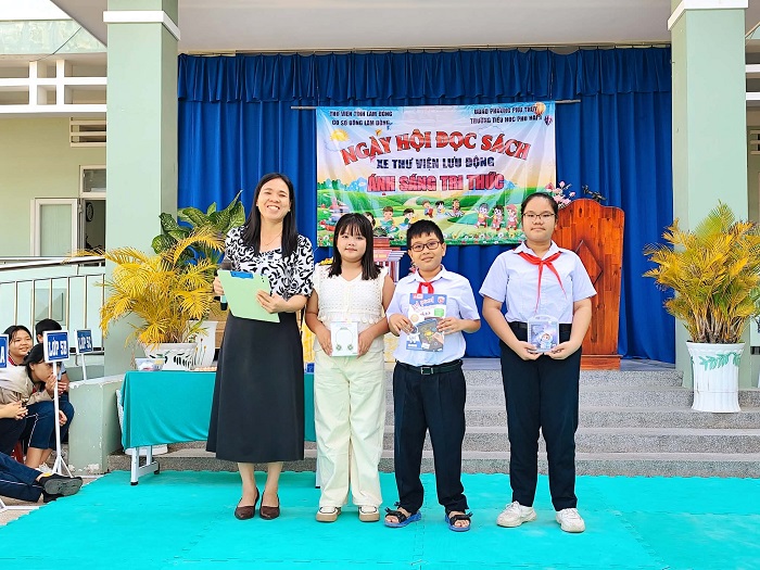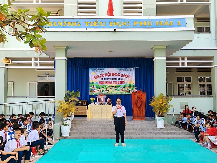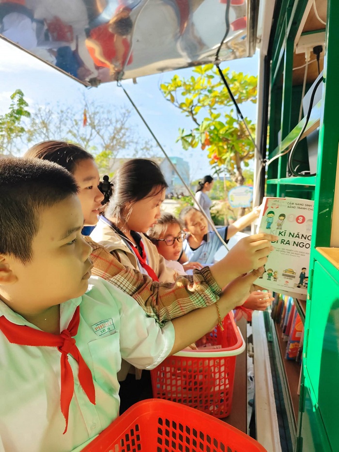 Xe thư viện lưu động đến với học sinh Trường Tiểu học Phú Hài 1