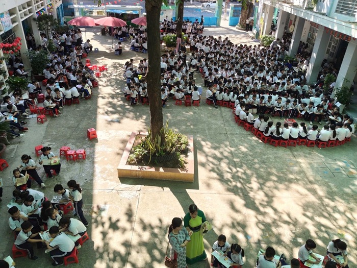 Chương trình đã thu hút 1002 em học sinh cùng tập thể thầy cô, cán bộ, nhân viên nhà trường tham gia. Bên cạnh việc đọc sách, các em còn được tham gia nhiều hình thức giao lưu, trò chơi tìm hiểu kiến thức gắn với sách, tạo nên không khí sôi nổi, hào hứng xuyên suốt chương trình.