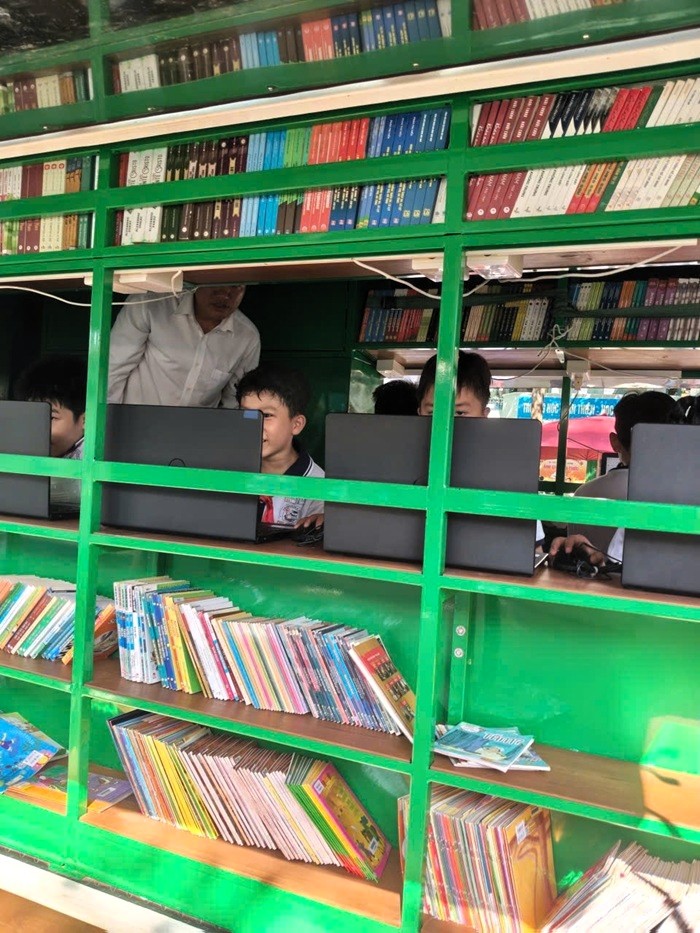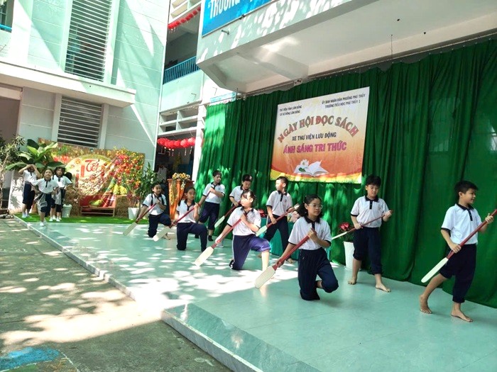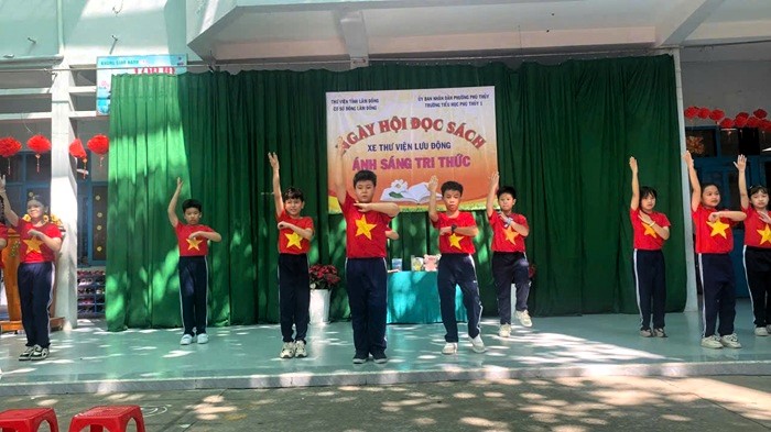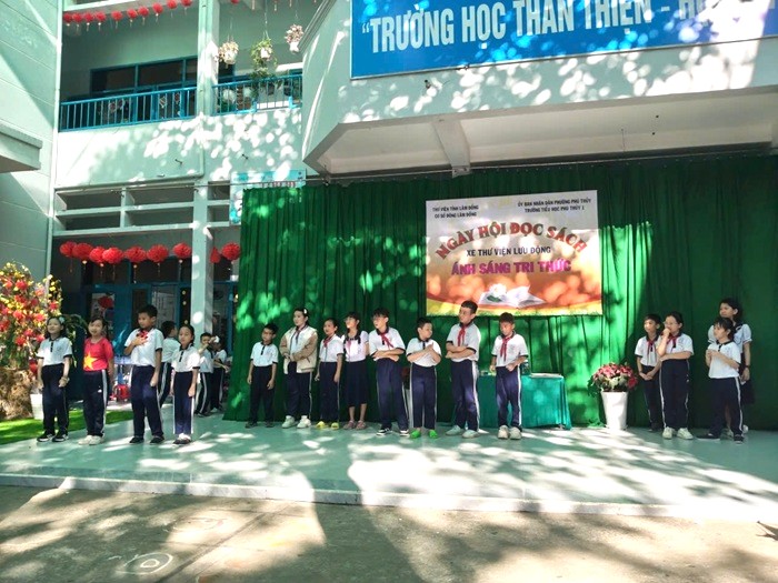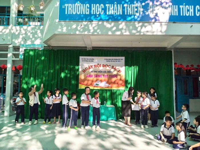 Xe thư viện lưu động đến với học sinh Trường Tiểu học Phú Thủy 1