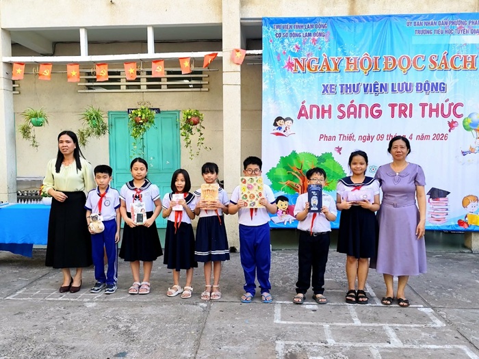 Chiều ngày 09/04/2026, xe Thư viện Lưu động tỉnh Lâm Đồng – Cơ sở Đông Lâm Đồng đã đến phục vụ tại Trường Tiểu học Tuyên Quang (phường Phan Thiết), mang theo 2.000 bản sách với nhiều thể loại phong phú, phù hợp với lứa tuổi học sinh tiểu học.